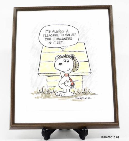 President Reagan was known to doodle, often on White House stationary, and he drew horses, cowboys, and football players. He corresponded with Peanuts cartoonist Charles Schulz, who drew numerous cartoons for President and Mrs. Reagan. President Reagan also enjoyed reading political cartoons.