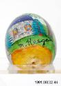 Physical DescriptionA hand painted wooden egg for the White House Easter Egg Roll by Marie Keegan titled "Easter Sunday Services." The egg depicts a man in a dark suit and a woman in a red dress and hat walking into a small stone church with stained glass windows and trees in the background. It is signed “M. Keegan” at the bottom.Historical NoteThe White House Egg Roll began in 1878 under President Rutherford B. Hayes. In the 1980s, under the general direction of the First Lady’s office, the Social Affairs office planned and coordinated White House social events and functions, including the annual Easter egg roll. Nancy Reagan began the tradition of creating wooden eggs as official souvenirs, as well as having costumes characters in addition to the Easter Bunny. Plain wooden eggs were also sent each year to artists around the country, well-known and amateur alike, to be painted. The eggs were then displayed at the White House during the festivities. A selection of these eggs was later given to the Ronald Reagan Presidential Library.